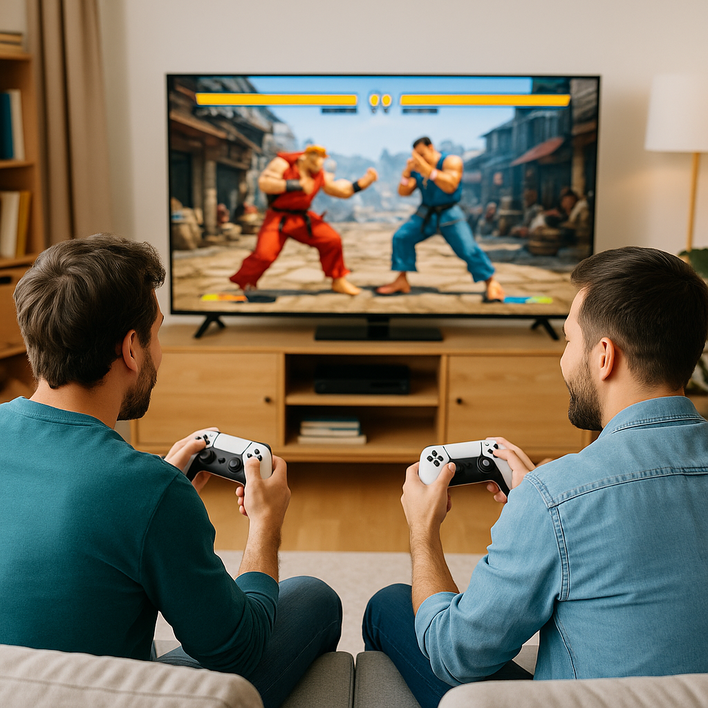 Il suffit de brancher la console via HDMI à votre TV ou projecteur, de l’alimenter en USB et de lancer le jeu. Plug & Play en quelques secondes.